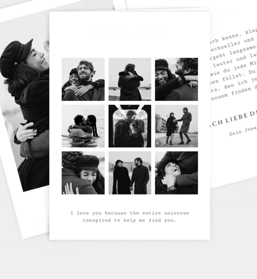 Der Valentinstag steht bevor und damit der Tag aller Verliebten und glücklichen Paare. Der 14. Februar bietet sich wunderbar dafür an, Ihrem Lieblingsmenschen eine Freude zu bereiten und Ihre Liebe zu gestehen. Gemeinsame Erinnerungen können in eigens gestalteten Fotobüchern oder Bilderboxen festgehalten werden und sind perfekte Geschenke, die personalisiert, originell und einfach voller Liebe sind. Handgeschriebene Worte auf einer Valentinstag Karte dürfen dabei natürlich nicht fehlen. Ganz egal, ob kurze Sprüche zum Valentinstag, Gedichte für den Valentinstag oder lustige Sprüche zum Valentinstag – hier finden Sie Inspiration, um Ihre Gedanken an Ihre Liebsten auf Papier zu bringen!