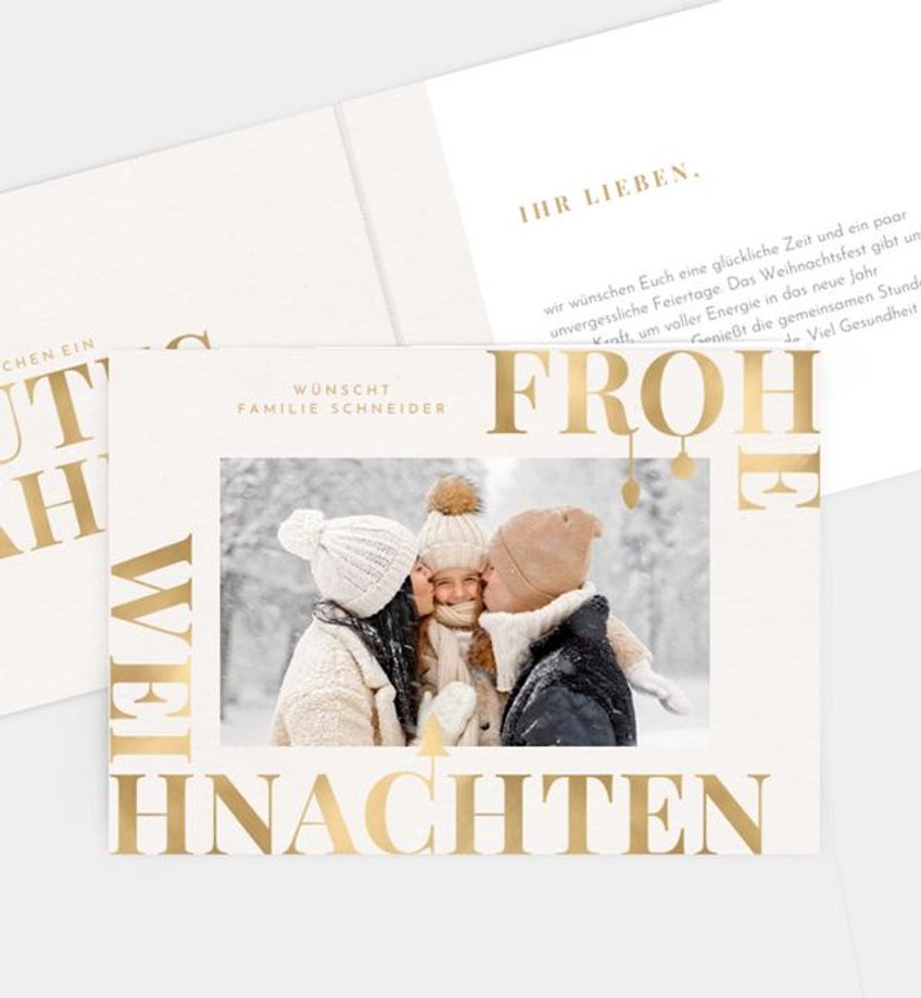 Schlicht, modern oder doch ganz klassisch? Sie haben die Wahl aus einer Vielzahl von Weihnachtskarten.