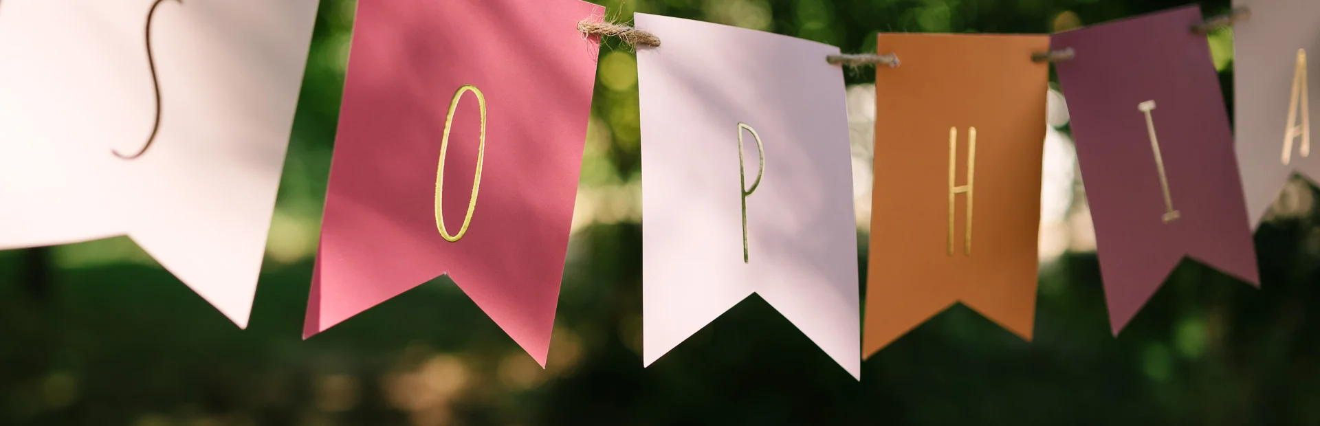Girlande mit Namen des Babys für die Babyshower Deko