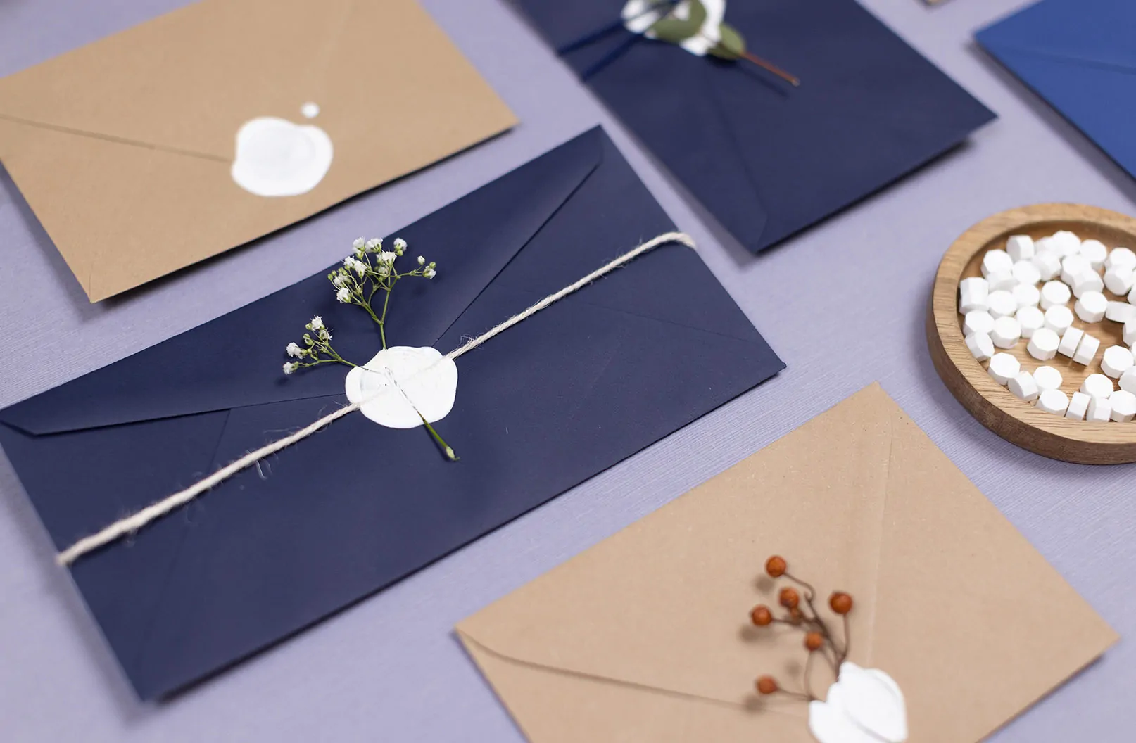 Extra-Tipp für Hochzeitspapeterie: Wachssiegel mit Trockenblumen