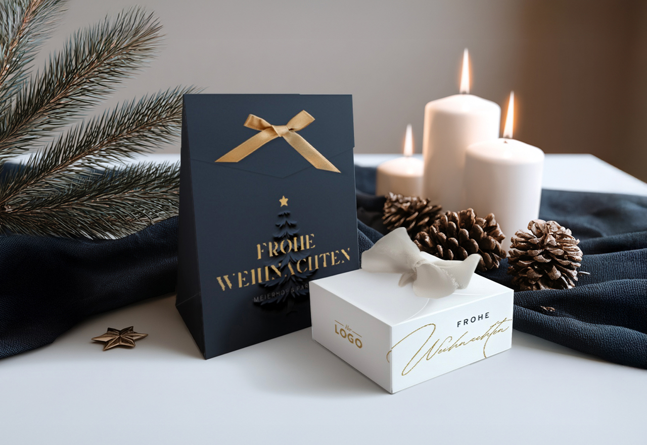 Das Verschenken eines Geschenkkorbs mit personalisierten Geschenkanhängern ist eine liebevolle Geste, um Ihren langjährigen Geschäftspartnern und Kunden eine Freude zu Weihnachten zu bereiten. Meist befinden sich in Geschenkkörben feine Leckereien wie Lebkuchen, Schokolade, Tee oder Nüsse – oftmals erwerbbar als vorbereitete Geschenksets. Da Geschenkkörbe auch als Mitarbeiter Geschenke beliebt sind, finden Sie hierzu weitere Inspiration in unserem Magazin Artikel Weihnachtsgeschenke für Mitarbeiter. Für ausgewählte kleinere Geschenke sind auch individualisierbare Geschenkboxen eine besonders stilvolle Möglichkeit, Kundengeschenke ansprechend zu verpacken. Ob in flacher Form, mit einem hübschen Band zum Verschließen oder als elegante Geschenktasche mit Schleife – jede Variante lässt sich frei gestalten und mit Ihrem Logo veredeln. So entsteht ein hochwertiger Gesamteindruck, der Ihre Marke auch im Detail sichtbar macht.
